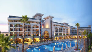 Oтель, расположенный на территории 64.000 кв.м в окружении живописной природы региона Белек Боазкент, обладает красивой архитектурой, оригинальными решениями дизайна и удобной инфраструктурой. Отель находится на расстоянии 40 км от международного аэропорта Антальи и 50 км от центра города.