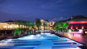 Отель состоит из основного здания и здания Делюкс, общий номерной фонд 724 номеров, которые расположены в 11 корпусах. На территории отеля 2 основных рестрана, 6 a’la carte ресторанов, 3 снэк ресторана, 11 баров и кафе, дискотека, 9 бассейнов, из них 2 закрытых и 7 открытых, 2 SPA центра, 1 теннисный корт, автопарк, мини клуб и детская игровая площадка, а также частный пляж с собственной инфраструктурой и пирсом.