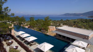 Отель Amanruya похож на аутентичную средиземноморскую деревню и расположен среди оливковых и кипарисовых рощ всего в 20 км от аэропорта Бодрума. Этот уединенный курорт построен на склоне холма и состоит из 36 коттеджей. Комнаты обставлены мебелью из красного дерева, кровати украшены балдахинами с легкими тканями, в каждом коттедже установлены традиционные турецкие жаровни, которые можно растопить как в помещении если вдруг стало прохладно, так и на открытой террасе. Защищенные мысом, террасы комплекса, каскадом спускаются к береговой линии, к пляжу и деревянному причалу. Здесь очень живописная и протяженная береговая линия с галечным пляжем. Отсюда легко добраться до всех достопримечательностей Бодрума.. Особое внимание отель уделяет Спа-процедурам и гастрономии, которой занимаются титулованные шеф-повара.